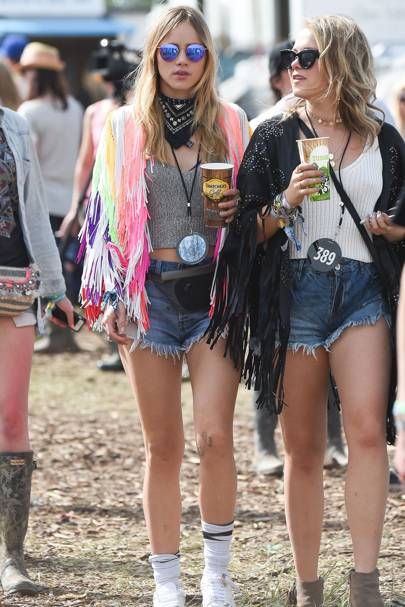 Contrary to popular belief, you don't have to wear hot pants, nor do you have to wear one of those natty hair accessories. What you will need is a warm jacket(unless you're festivaling on sunnier shores, in which case just a good pair of sunglasses will do); a slouchy jumper and a hardy pair of shorts. You need to be able to dance as energetically as Mick Jagger and walk for miles without getting wet feet or being in pain.